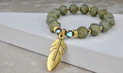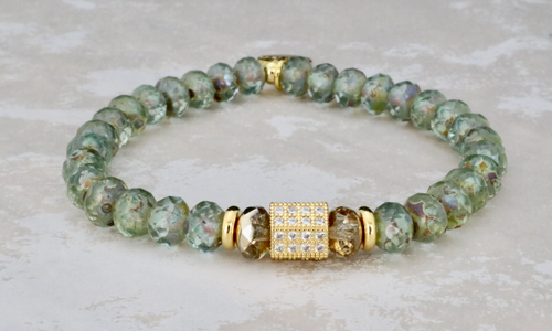Pave Hexagon Rebecca on Light Sage Czech Rondelles
