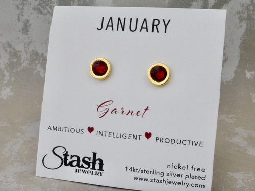 January Birthstone Studs - Garnet